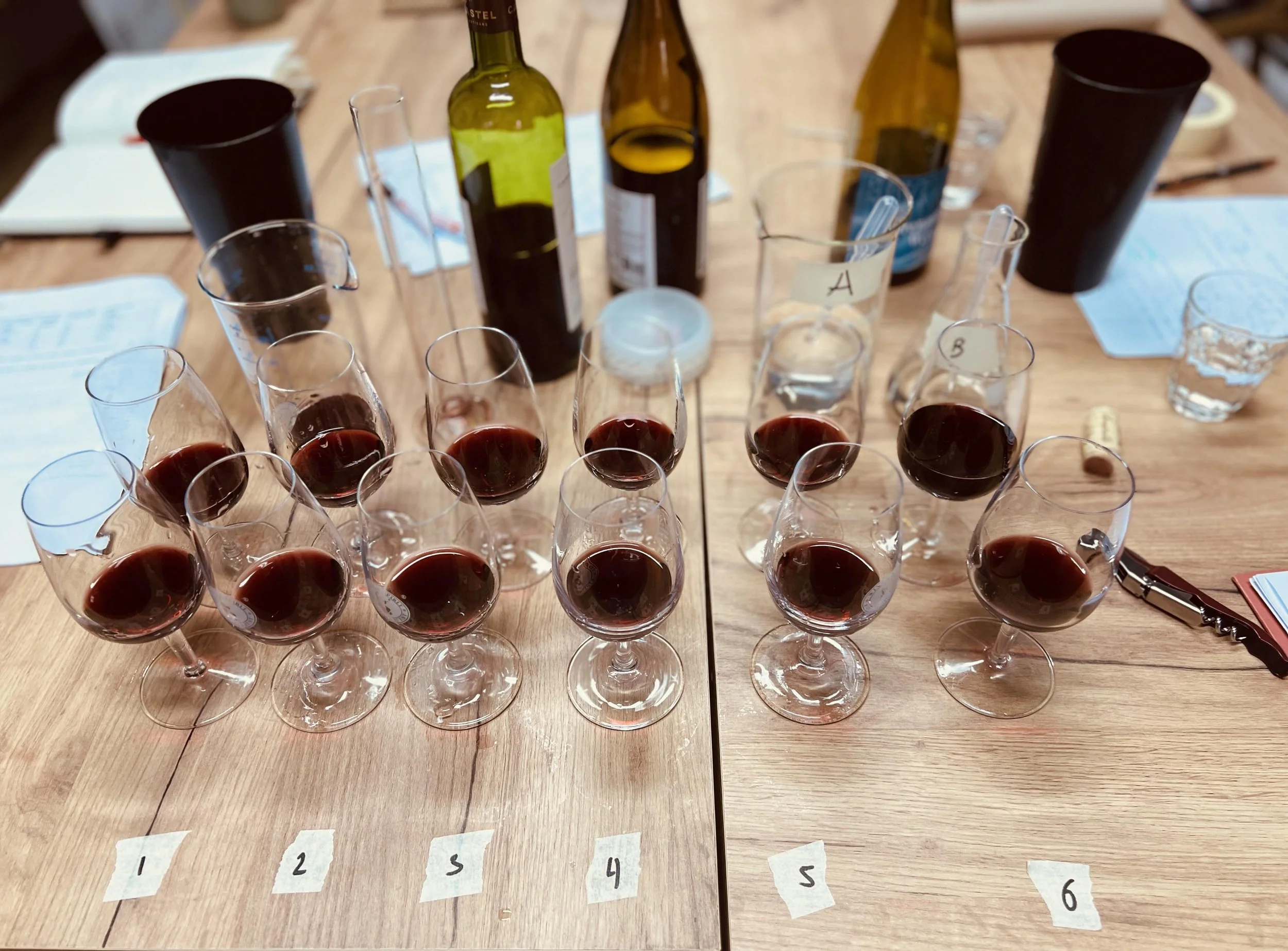Practical tasting of the following wine faults: Lightstrike, Oxidation, Maderisation, Reduction, Volatile Acidity, TCA experience (Cork Taint)
